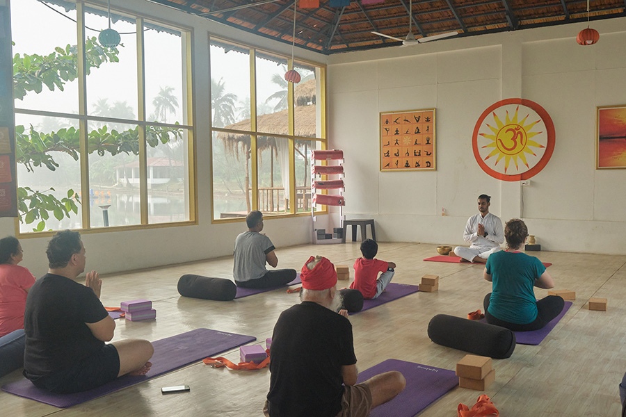 Nos alojamos en un centro de retiro de bienestar de referencia en Goa, reconocido internacionalmente por la calidad de sus programas de Ayurveda y Yoga. Situado junto a un lago de agua dulce, y al lado de ua inmensa playa, ofrece un entorno de paz y naturaleza incomparable, con instalaciones de primer nivel: spa, jardines tropicales, sala de yoga con vistas al lago y un restaurante que sirve cocina ayurvédica de excelencia.